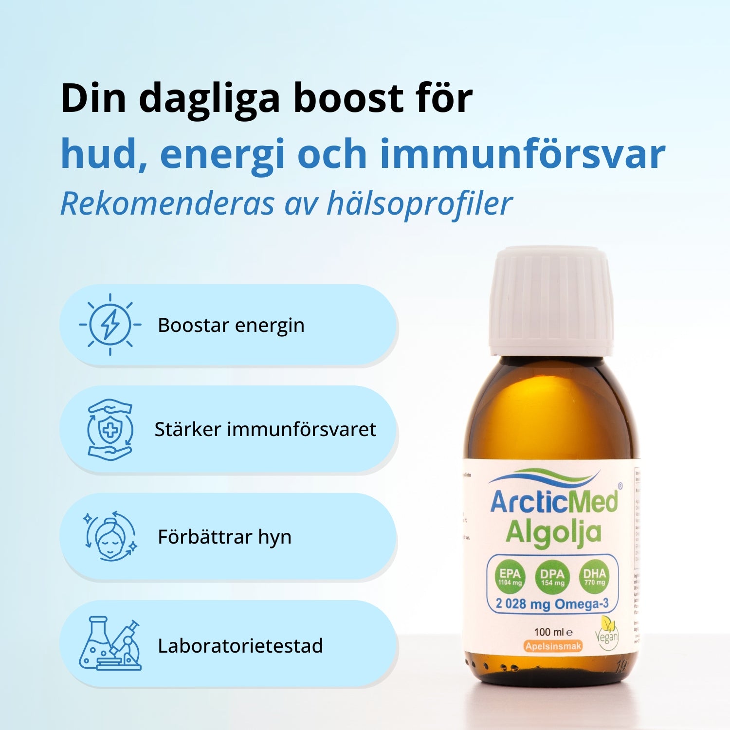 Många av våra kunder berättar hur ArcticMeds unika, växtbaserade kombination av EPA-, DPA- och DHA-rika algoljor bidragit till ett påtagligt lyft i deras välbefinnande. Genom att återställa balansen av essentiella fettsyror i kroppen kan du uppleva märkbara förbättringar både inifrån och ut.